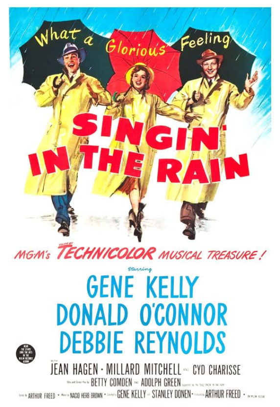 1927 Hollywood. Monumental Pictures’ biggest stars, glamorous on-screen couple Lina Lamont and Don Lockwood, are also an off-screen couple if the trade papers and gossip columns are to be believed. Both perpetuate the public perception if only to please their adoring fans and bring people into the movie theaters. In reality, Don barely tolerates her, while Lina, despite thinking Don beneath her, simplemindedly believes what she sees on screen in order to bolster her own stardom and sense of self-importance. R.F. Simpson, Monumental’s head, dismisses what he thinks is a flash in the pan: talking pictures. It isn’t until The Jazz Singer (1927) becomes a bona fide hit which results in all the movie theaters installing sound equipment that R.F. knows Monumental, most specifically in the form of Don and Lina, have to jump on the talking picture bandwagon, despite no one at the studio knowing anything about the technology. Musician Cosmo Brown, Don’s best friend, gets hired as Monumental’s ideas man and musical director. And by this time, Don has secretly started dating Kathy Selden, a chorus girl who is trying to make it big in pictures herself. Don and Kathy’s relationship is despite their less than friendly initial meeting. Cosmo and Kathy help Don, who had worked his way up through the movie ranks to stardom, try make the leap to talking picture stardom, with Kathy following along the way. However, they have to overcome the technological issues. But the bigger problem is Lina, who will do anything to ensure she also makes the successful leap into talking pictures, despite her own inabilities and at anyone and everyone else’s expense if they get in her way, especially Kathy as Don’s off screen girlfriend and possibly his new talking picture leading lady.